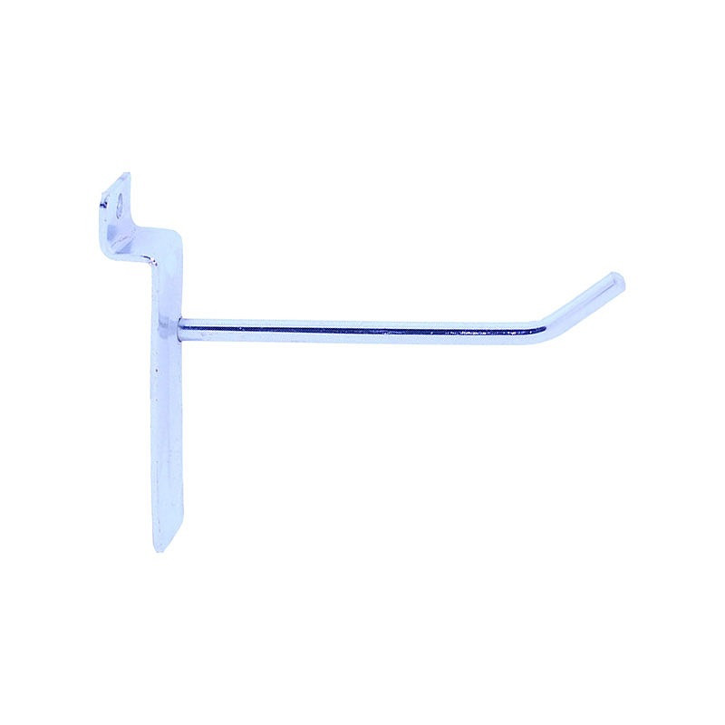 Enkele blisterhaak, te gebruiken voor een slatwall. Kleur : chroom Lengte : 100 mm