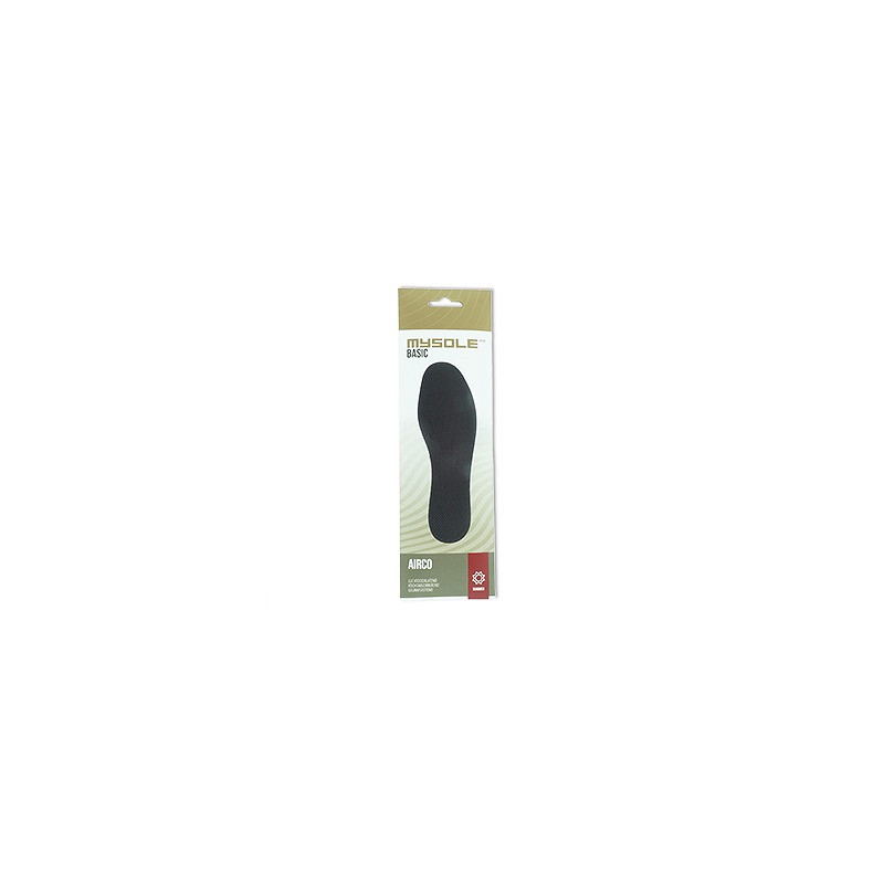De Mysole Basic Airco is een ademende en vochtopnemende inlegzool. De toplaag van de inlegzool bevordert de luchtcirculatie en zorgt ervoor dat uw voeten droog blijven in uw schoenen. De tussenlaag van de inlegzool bestaat onder andere uit actieve koolstof, waardoor onaangename geurtjes voorkomen worden. De onderlaag is tevens luchtdoorlatend en schokdempend wat zorgt voor extra comfort. Uitgebreide productspecificaties en toepassingsmogelijkheden van deze inlegzool vindt u op www.mysole.nl.