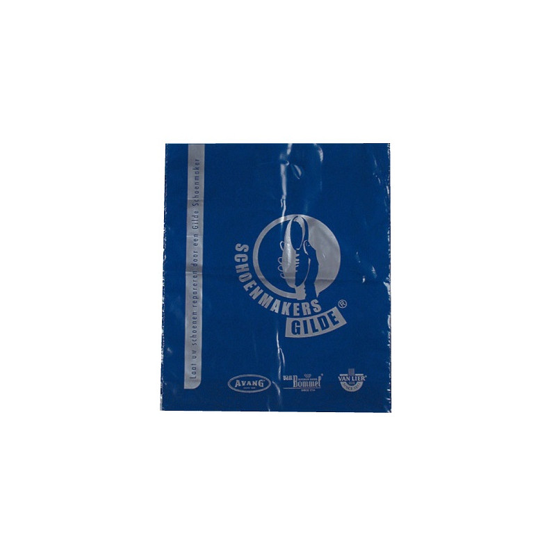 Witte plastic draagtas met Schoenmakersgilde opdruk.