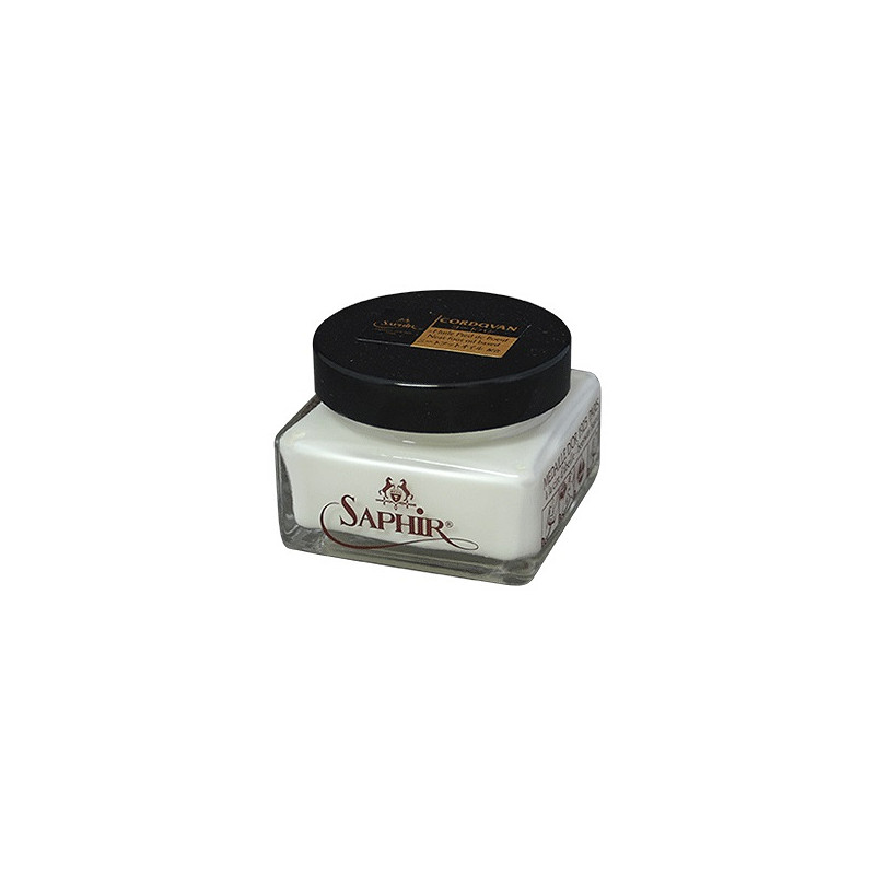 Crème op basis van bijenwas en klauwolie. Voor behoud van de specifieke eigenschappen (strakke poriën) van Cordovan (paardenleder), voedt en beschermt. Inhoud: 75ml.