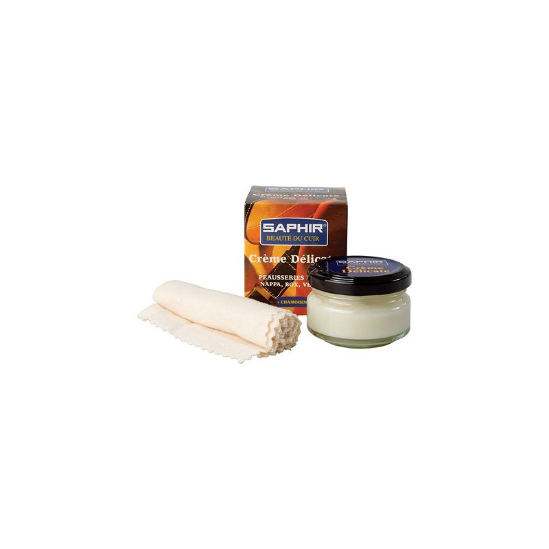 Zacht en voedende milde crème voor kwetsbare gladde leersoorten zoals nappa, boxkalfleer. op basis van tarweproteïnen en jojobaolie. Voor tassen, schoenen en kleding. Met doekje. Inhoud: 50 ml.