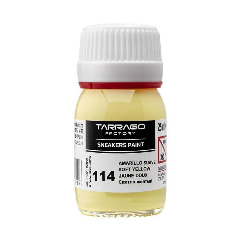 Tarrago Sneakers Paint in pastel kleuren, is een acrylverf op waterbasis speciaal gemaakt om je gladleren, synthetisch leren of canvas sneakers te cusomizen. Het eindresultaat is een glanzende finish, die hoge weerstand biedt tegen natte en droge wrijving. De kleurstof blijft flexibel, waardoor de verf niet scheurt/craqueleert. Door hoge concentratie hoogwaardige pigmenten, weinig lagen nodig voor een dekkend resultaat.Om je kunstwerk nog beter te beschermen, kun je deze afwerken met Tarrago Sneakers Gloss Maker. Deze zorgt voor extra beschermende glans laag. Tarrago Sneakers Paint droogt snel (5-10 minuten).- 25ml- 7 verschillende kleuren- inclusief kwastje, sponsje, doseerdop, folder- niet schadelijk voor gebruiker en het milieu