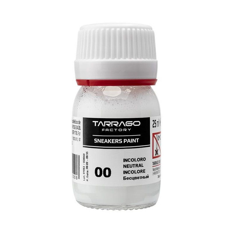 Tarrago Sneakers Paint Neutral Base kan gebruikt worden om kleuren te verdunnen, maar ook om de slijtweerstand van de kleuren te verhogen. Voor het eerste dien je de neutral base te mengen met een kleur, tot de gewenste kleur verkregen is. Om de slijtweerstand van kleuren te verhogen, dient de opgebrachte verf eerst te drogen, om vervolgens te voorzien met een beschermlaag van neutral base.Let op: Dit artikel betreft alleen de verf en wordt geleverd zonder verdere attributen.- 25ml- sneldrogend- niet schadelijk voor gebruiker en het milieu