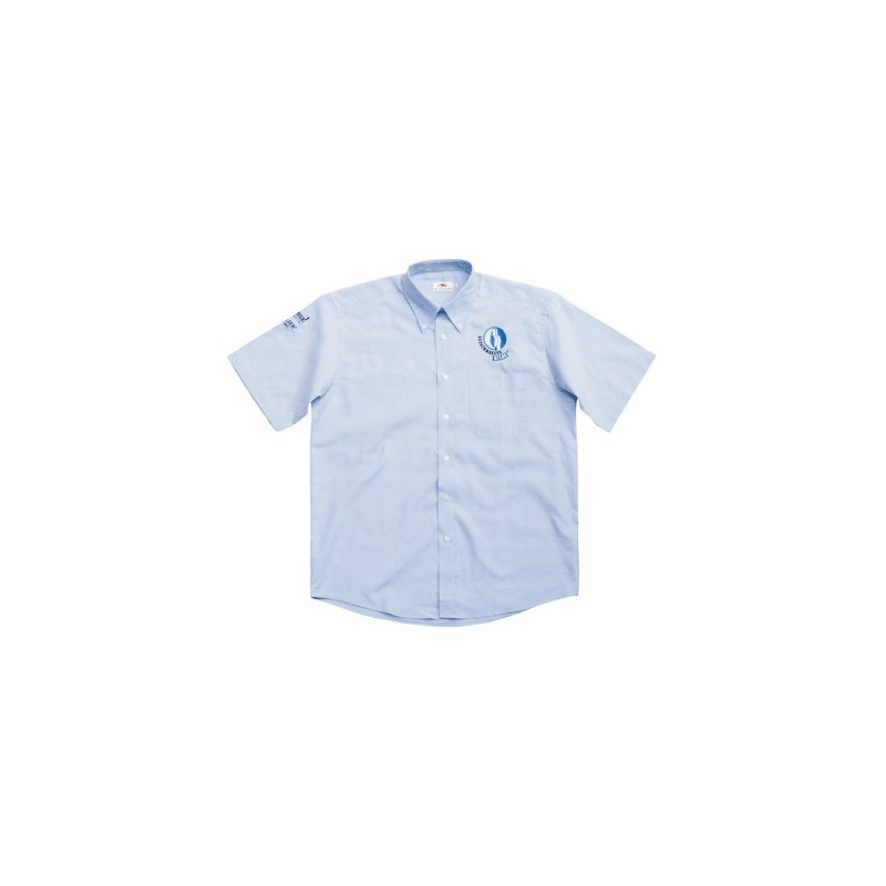 Schoenmakersgilde overhemd met korte mouw. Lichtblauw met Schoenmakersgilde logo.