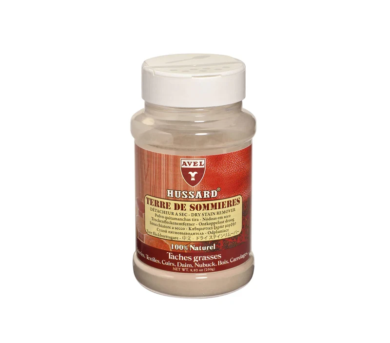 Volledig natuurlijke lederreiniger in poedervorm welke (verse) vet-, talg-, olie- en wijnvlekken uit leer, nubuck, suède en texmaterialen verwijdert, zonder kringen achter te laten.