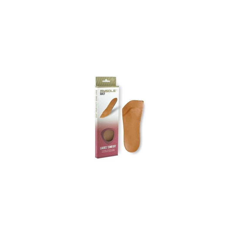 Deze uitgebreid geteste driekwart MYSOLE Ladies' Comfort is dé oplossing voor veel voorvoetproblemen bij dames, met name bij het lopen op hoge hakken. De MYSOLE Ladies' Comfort geeft optimale ondersteuning aan de voorvoet. Hierdoor worden veel klachten voorkomen én opgelost. De MYSOLE Ladies' Comfort zorgt ook voor drukverdeling, drukontlasting, en schokdemping tijdens het staan en lopen.Uitgebreide productspecificaties en toepassingsmogelijkheden van deze inlegzool vindt u op www.mysole.nl.