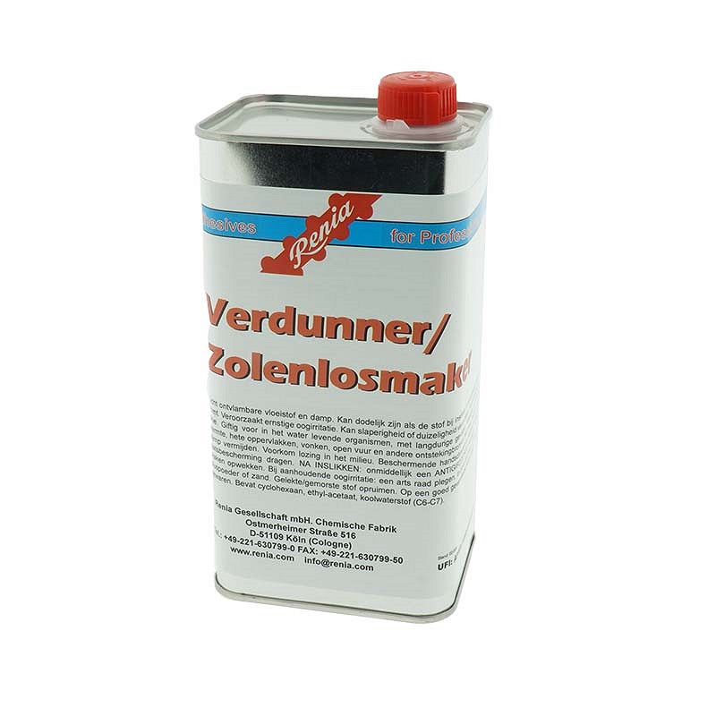 Tolueenvrije verdunner voor alle snelle kontaktlijmen, zoals Colle de Cologne, Vulkofest, Top Fit en Ortec. Inhoud: 5 liter