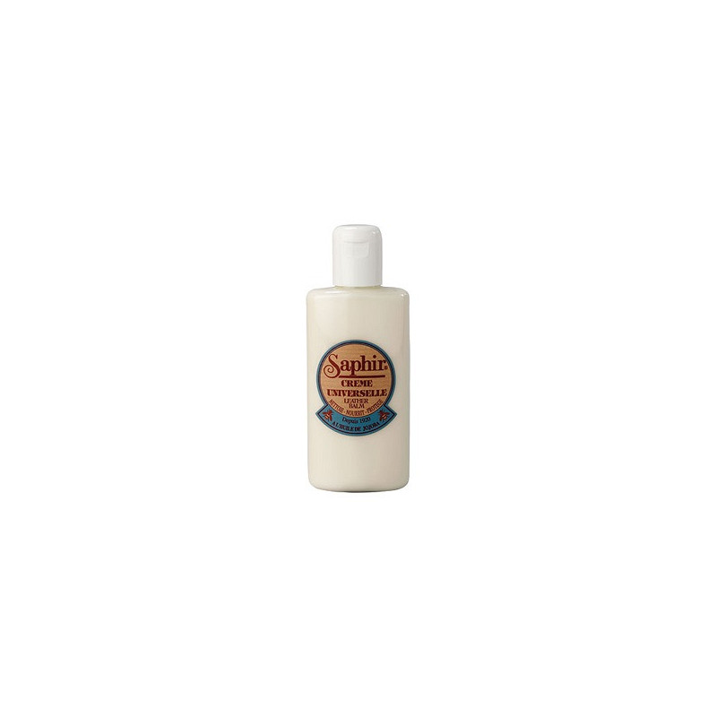 De Saphir Crème Universelle is gebaseerd op Jojoba-olie (gewonnen uit de Jojoba-noot die voornamelijk groeit in de droge regio's van Mexico en het zuiden van de Verenigde Staten van Amerika) die regeneratieve en anti-aging werking biedt om de flexibiliteit van leer te beschermen en te behouden. Dankzij de rijkdom aan bijenwas (28,9% was) en de opname van lanoline (vet afgescheiden door schapen), staat de Saphir Crème Universelle bekend om zijn voedende, hydraterende, verzachtende en glanzende eigenschappen.