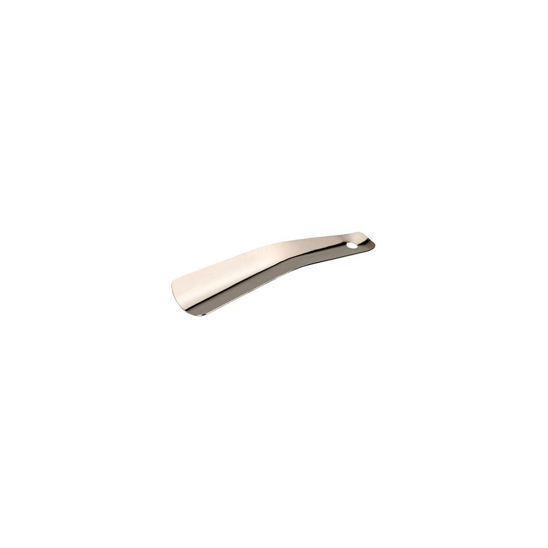 Sterke metalen schoenlepel zonder haak. Met gat om de schoenlepel op te hangen. Kleur nikkel/chroom. Lengte 15cm