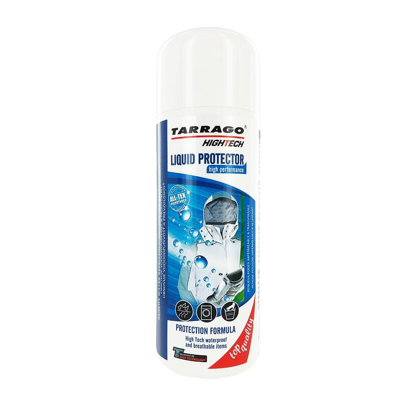 Tarrago Liquid Protector vernieuwt de waterafstootbaarheid en herstelt het ademend vermogen. Tast de textielkleuren niet aan. Speciaal aanbevolen voor thuisgebruik (wasmachine en handwas) met waterafstotende en ademende kledingstukken.