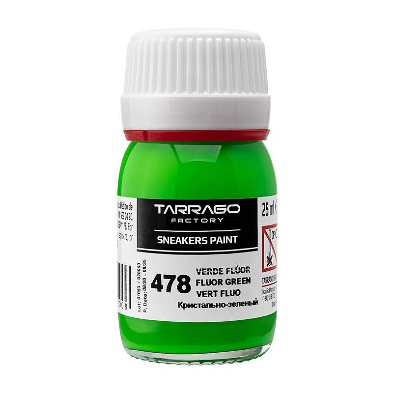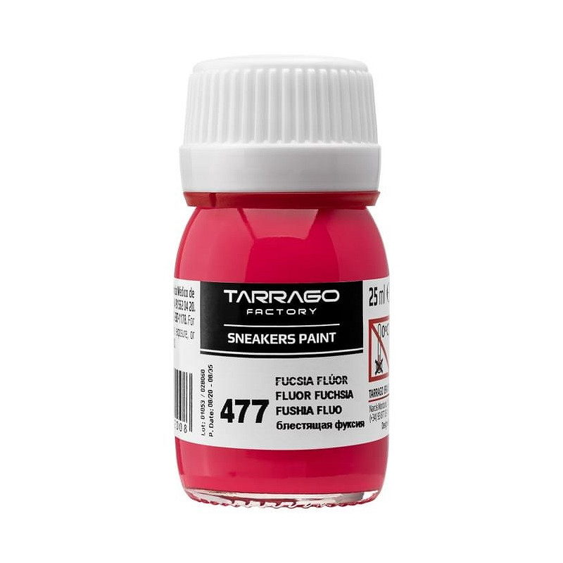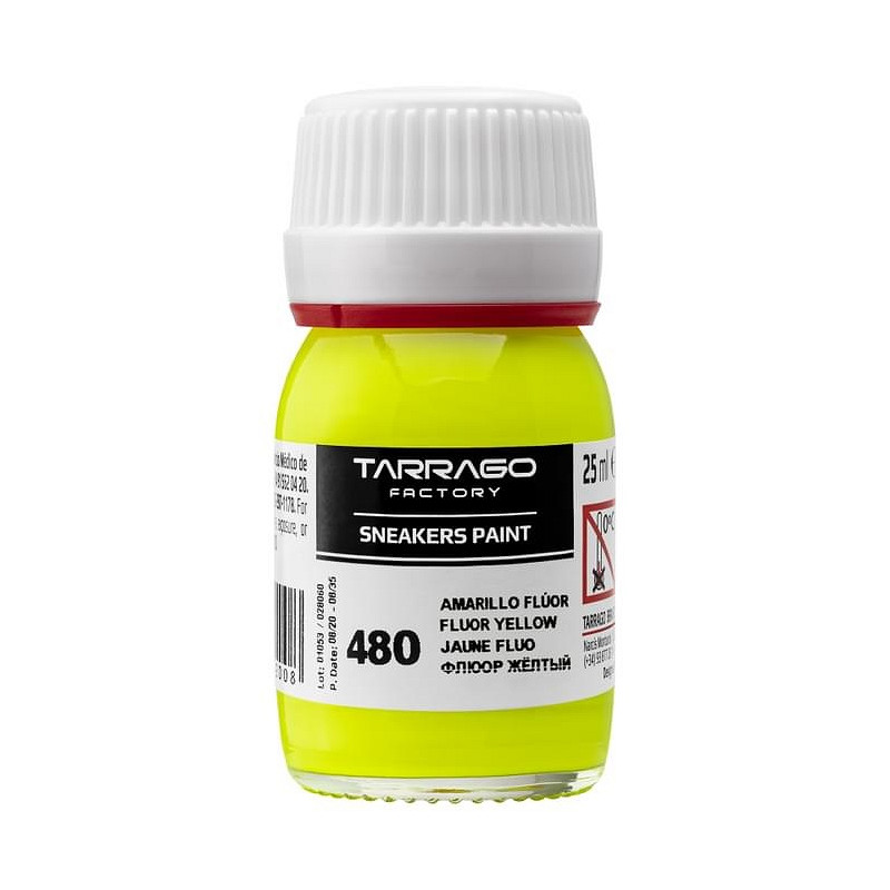 Tarrago Sneakers Paint in fluor kleuren, is een acrylverf op waterbasis speciaal gemaakt om je gladleren, synthetisch leren of canvas sneakers te cusomizen. Het eindresultaat is een glanzende finish, die hoge weerstand biedt tegen natte en droge wrijving. De kleurstof blijft flexibel, waardoor de verf niet scheurt/craqueleert. Door hoge concentratie hoogwaardige pigmenten, weinig lagen nodig voor een dekkend resultaat.Om je kunstwerk nog beter te beschermen, kun je deze afwerken met Tarrago Sneakers Gloss Maker. Deze zorgt voor extra beschermende glans laag. Tarrago Sneakers Paint droogt snel (5-10 minuten).- 25ml- 5 verschillende kleuren- inclusief kwastje, sponsje, doseerdop, folder- niet schadelijk voor gebruiker en het milieu
