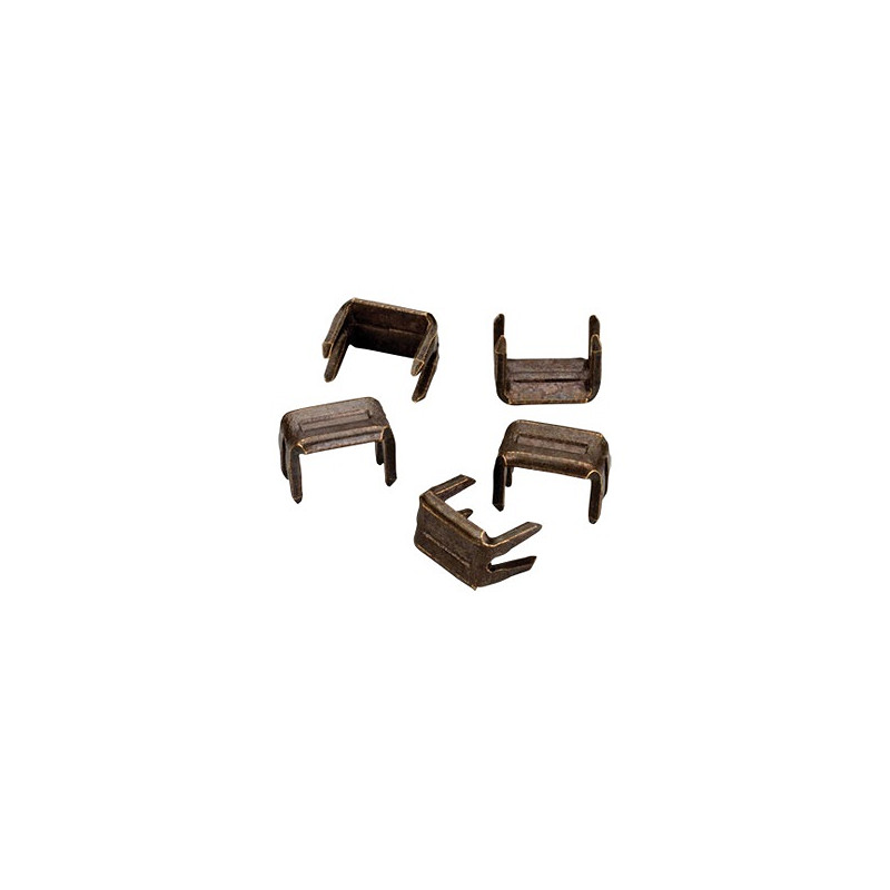 Eindstop krammetjes voor YKK ritsen. U-vorm met 4 pinnetjes. Kleur nikkel. Verpakt per 100 stuks.
